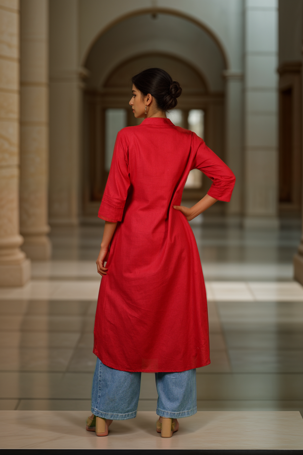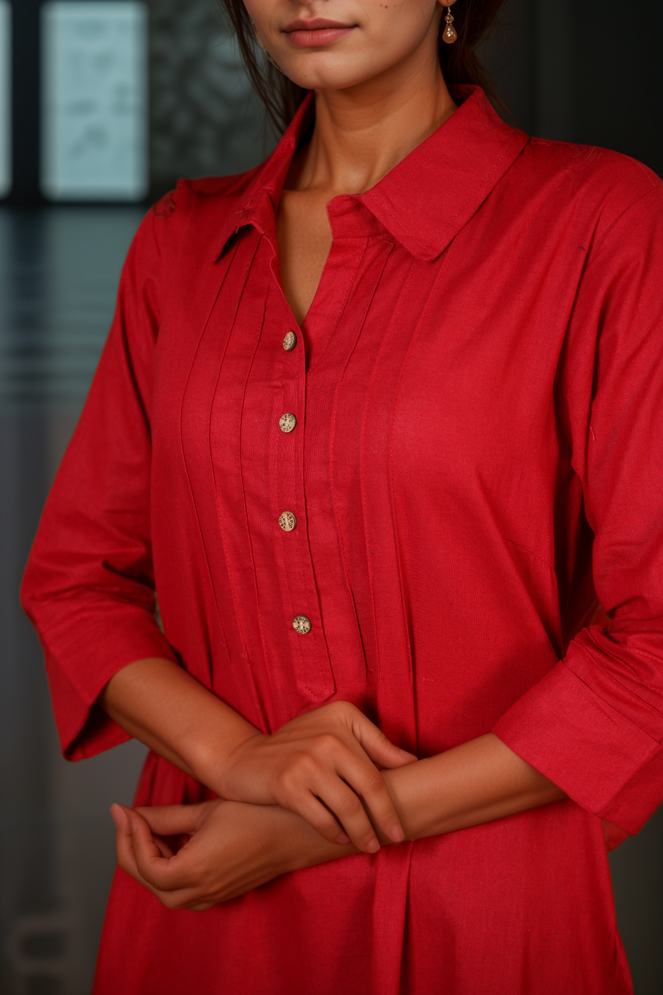 This maroon pleated medium kurta from House of Pooja Shukla Private Limited offers a refined blend of traditional design and contemporary style. Crafted for comfort and elegance, it is ideal for those seeking a versatile top wear option. Available in size S, this kurta combines quality fabric with expert tailoring, making it a sophisticated choice for various occasions.